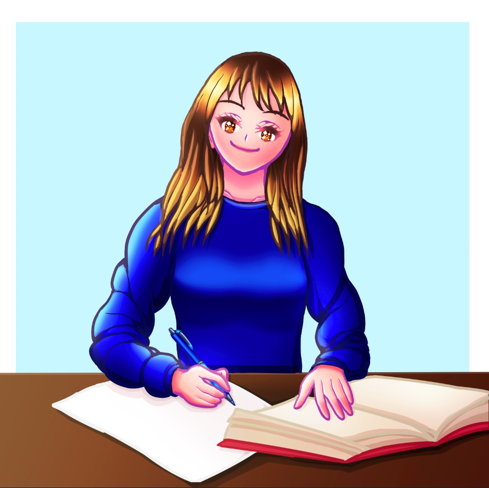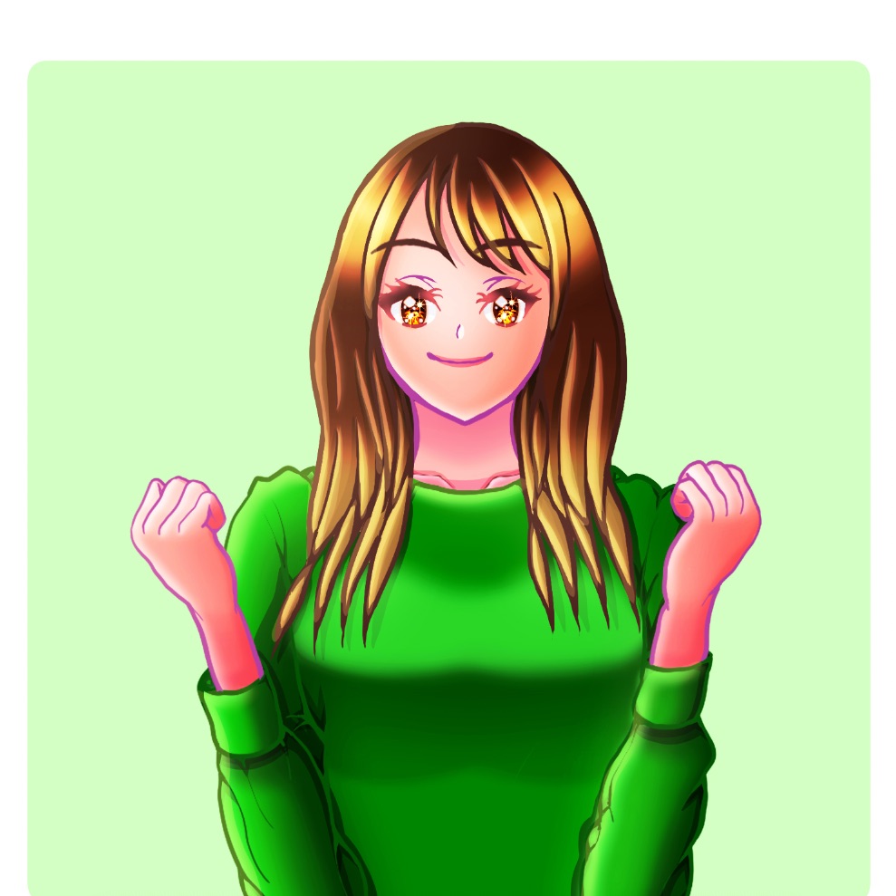 上記のイラストも、私が自分で描いたオリジナルイラストです。このキャラクターの服と背景には緑色を使い、調和を望みながらも強い信念を持っている雰囲気で描きました。