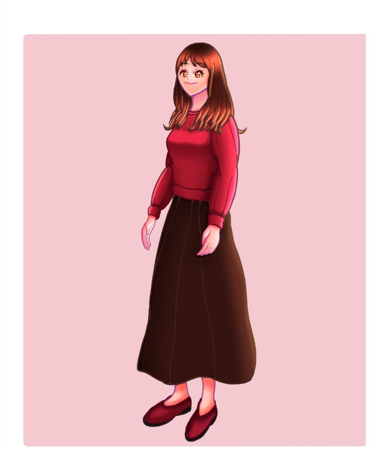 上記のイラストは、私が自分で描いた『赤い服を着た女性』のイメージです。赤を取り入れることで、表情までパッと明るく、その人本来の魅力が引き出されることがわかります。